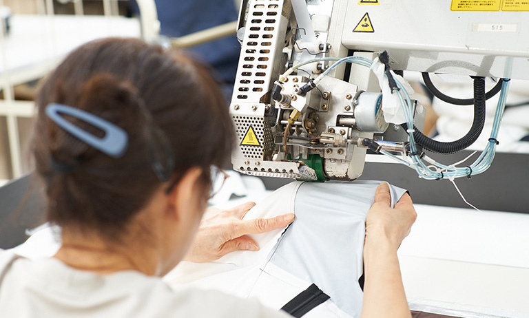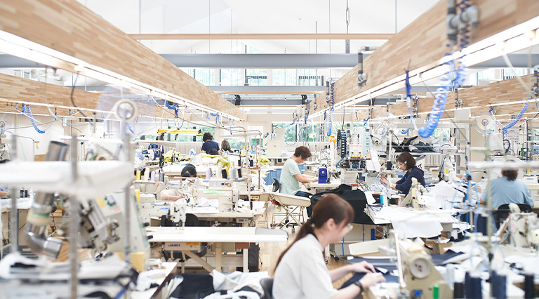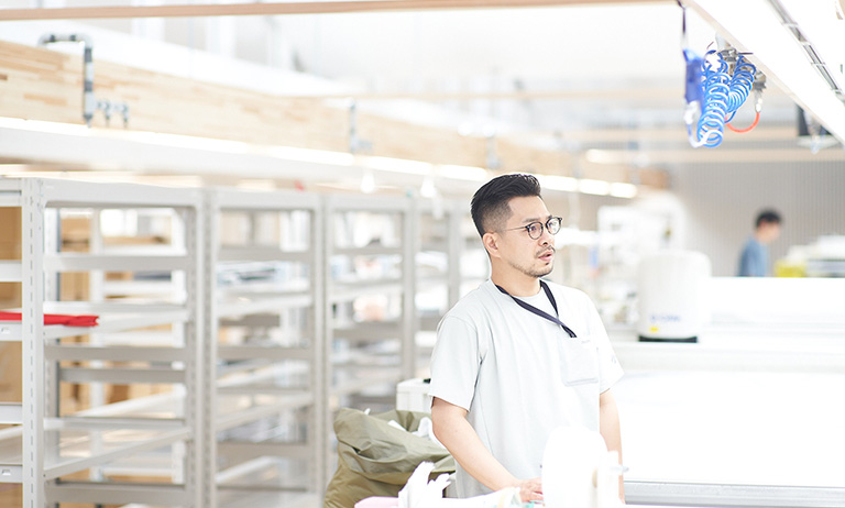 作業スタッフの動線もまた、緻密に設計されている。素材の搬入から縫製、仕上げ、検品に至るまで、人もモノも滞りなく流れる。生産課課長の齊藤慎樹さんは語る。