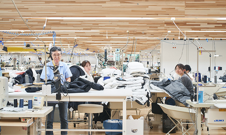 現在、約120人のスタッフがそれぞれの工程を担い、積み重ねた技が一着の「水沢ダウン」へと結実する。