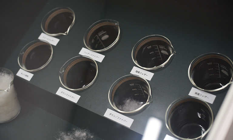 「羽毛検査室」も完備。納品される羽毛までも徹底した品質管理が行われる。