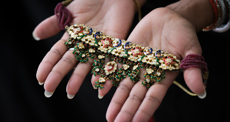 インド・ジャイプール出身のディパリさんの家に代々伝わるジュエリー。およそ500年前から母から子へ、そして孫へと受け継がれてきた。