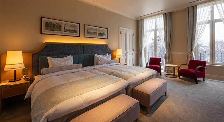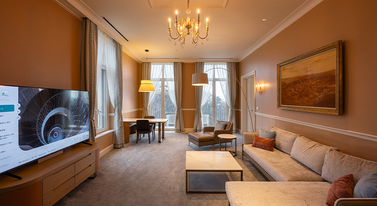 スイートルームの一例。全12室のうち2室がスイートルームで、天井高3.3メートルのゆったりとした空間が広がる。