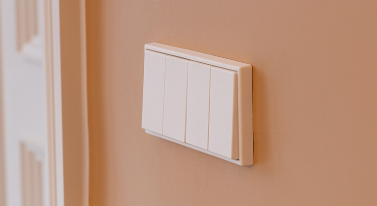 ヨーロッパで多く用いられるドイツ製のスイッチを使用。ライトのスイッチひとつにも妥協をしない姿勢が唯一無二の空間を生み出す。