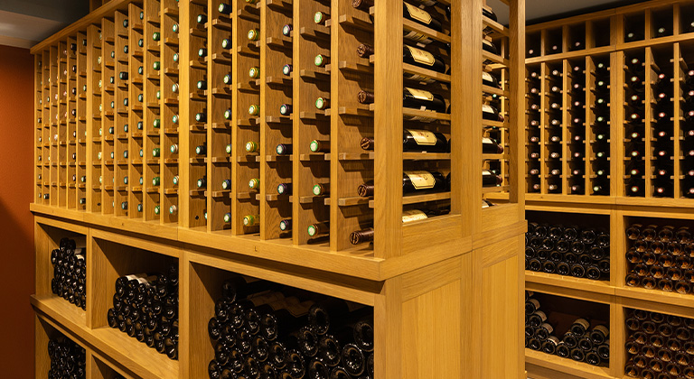 白やシャンパーニュ用、赤用、すぐにテーブルへ出せる温度のもの、と役割ごとに分けられ、厳しく温度管理されたセラーが、ワインの状態を最優先に守り続けている。