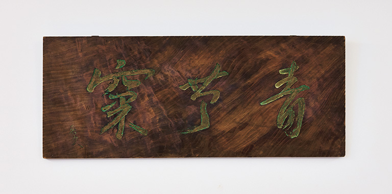 カウンター席正面にかけられた魯山人による篆刻の扁額。運命的に出会い、店名となった。