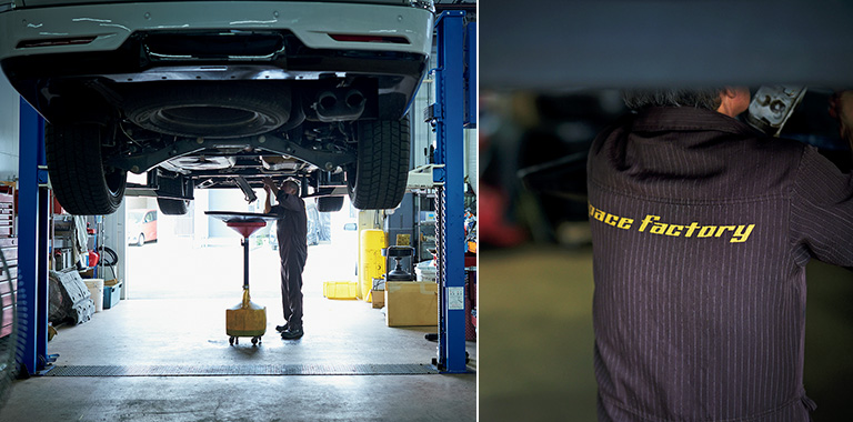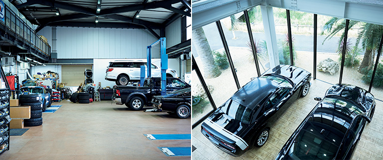 スペースファクトリーの強みは、販売だけでなく、輸入、整備、車検、アフターサービス、パーツの手配に至るまで、すべてを自社で一貫して行っている点にある。最新のテスターを導入しており、コンピュータープログラムの診断からエンジンやATのオーバーホールまで、すべて自社での対応が可能だ。