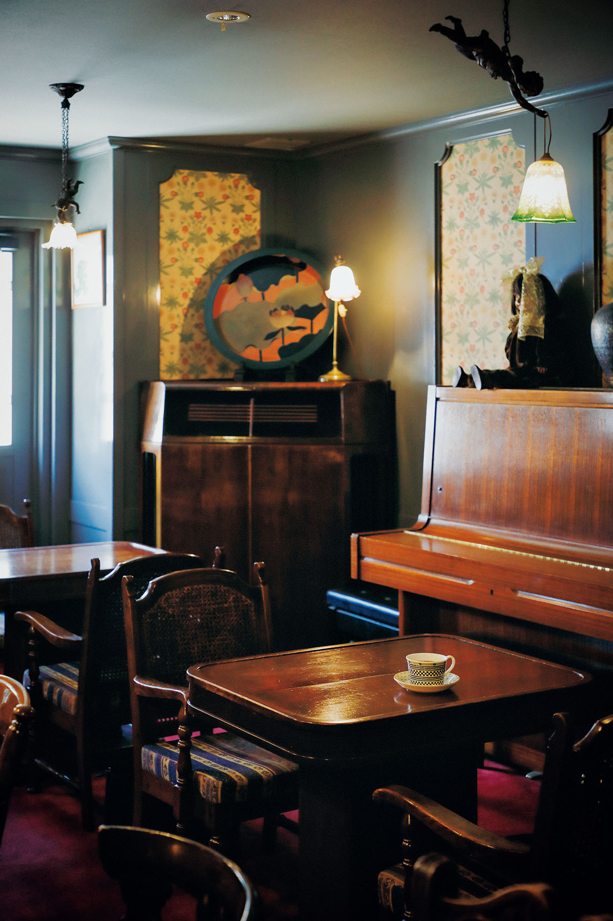 「高校時代から同志社大近くのジャズ喫茶『BIG BEAT』にずっと通っていて。そこのマスターに『そんなに好きなら自分でやれば?』と言われたんです」と語るのは、店主の熊代忠文さん。もともとここは父が開いた質店『大和屋』だったが、1970年に思い切って転業。2013年の建て替えを経て、ウィリアム・モリスの壁紙や赤絨毯が印象的な店となり、英国製スピーカー「VITAVOX KLIPSCHORN」がレコードの音を柔らかく響かせている。