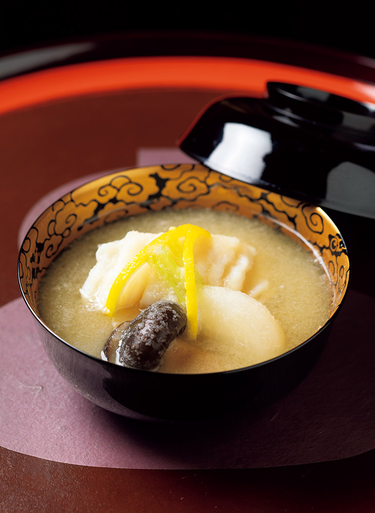 『菊乃井』の椀物は「ひと口含んだときは控え目な味わい。けれども何日かした後に、ふとまた飲みたくなる」ような〝残心の味〞へ仕上げるのが常だそう。