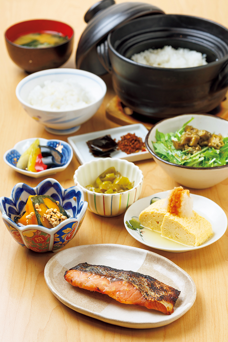 朝食の提供は2016年から。「旅の楽しみの一つは朝食ですよね。観光に来られた人が炊き立てのご飯で、朝から京都らしい和食が楽しめる場所になればと始めました」と語るのは、店主の森宏午さん。来店時間に合わせ30分かけて土鍋ご飯を炊き上げるため、朝食は予約制。7時半から10時まで30分刻みのスタートで、1日30組・60食限定だ。