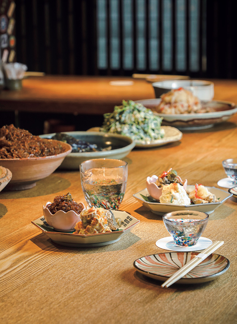 料理は、京都育ちの石川さんが母の味として親しんできたおばんざいが中心。「おばんざい」とは京都の家庭でつくられてきた「おかず」で、季節の野菜を中心に出汁で煮炊きしたものが多い。