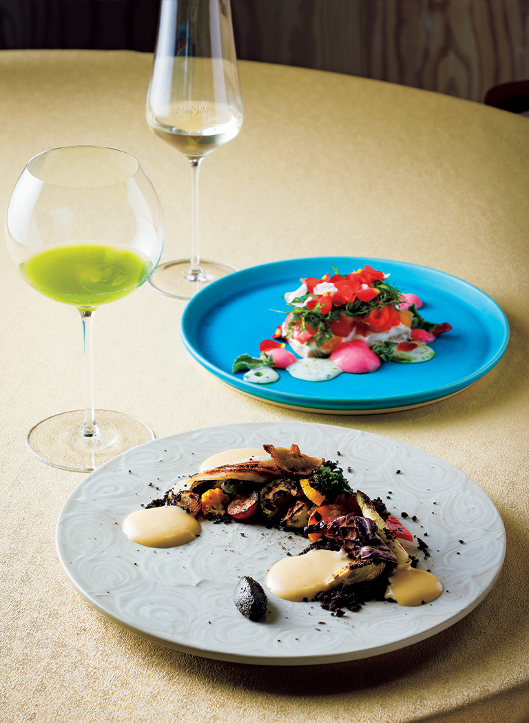 「ソース使いをはじめクラシックなフレンチの基礎を教わりました」。つづいて独創的なイタリアン『ristorante NAKAMOTO』で野菜の味を引き出す調理法を、祇園の和食店では昆布締めなど魚の旨みを存分に活かす技術を学んだという。さらにはメディカルハーブコーディネーターの資格も取得。フレンチを礎としつつ、美味を生み出す技を貪欲に取り入れてきたシェフである。