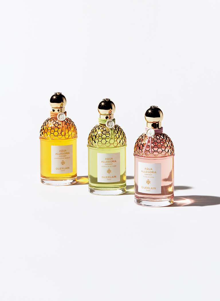 そして今年、核となる1つの素材をフィーチャーした「アクア アレゴリア ハーベスト」が登場。「マンダリン バジリック」はイタリア南部のカラブリアのマルツォーロマンダリン、「ローザ ロッサ」はグラースのセンティフォリア ローズ、「ネロリア ベチバー」はイオニア海の海岸線にある果樹園のオレンジの花にフォーカス。