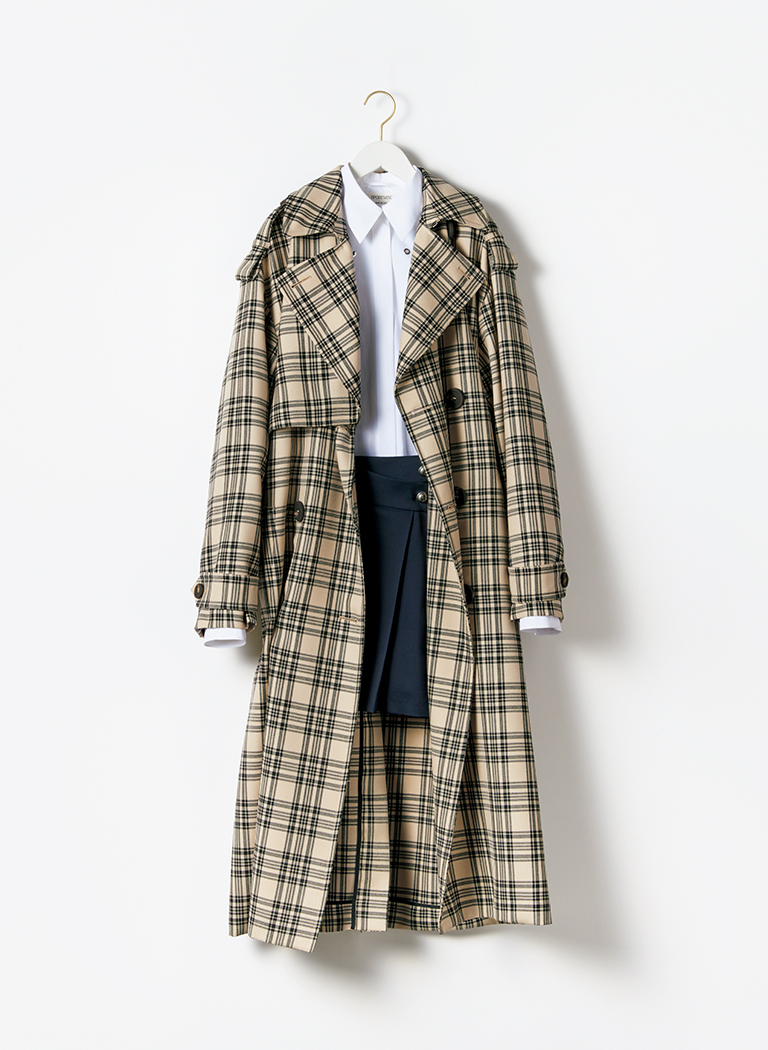 トレンチコート292,600円、シャツ69,300円、スカート69,300円(すべて税込)