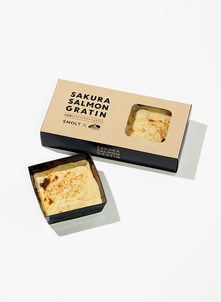 これまでにも牡蠣やバナメイエビ、イクラなどを素材に数々の品を手がけてきたが、新たな一品が「本桜鱒とドライトマトのチーズグラタン」。海上の生け簀で育てた養殖サクラマスを淡水の水槽に移して採卵し、ふ化した仔魚を再び養殖する「完全循環型」を採用した食材を元に、東京・神楽坂のイタリアン『アルボール』の古田崇シェフが腕を振るった。