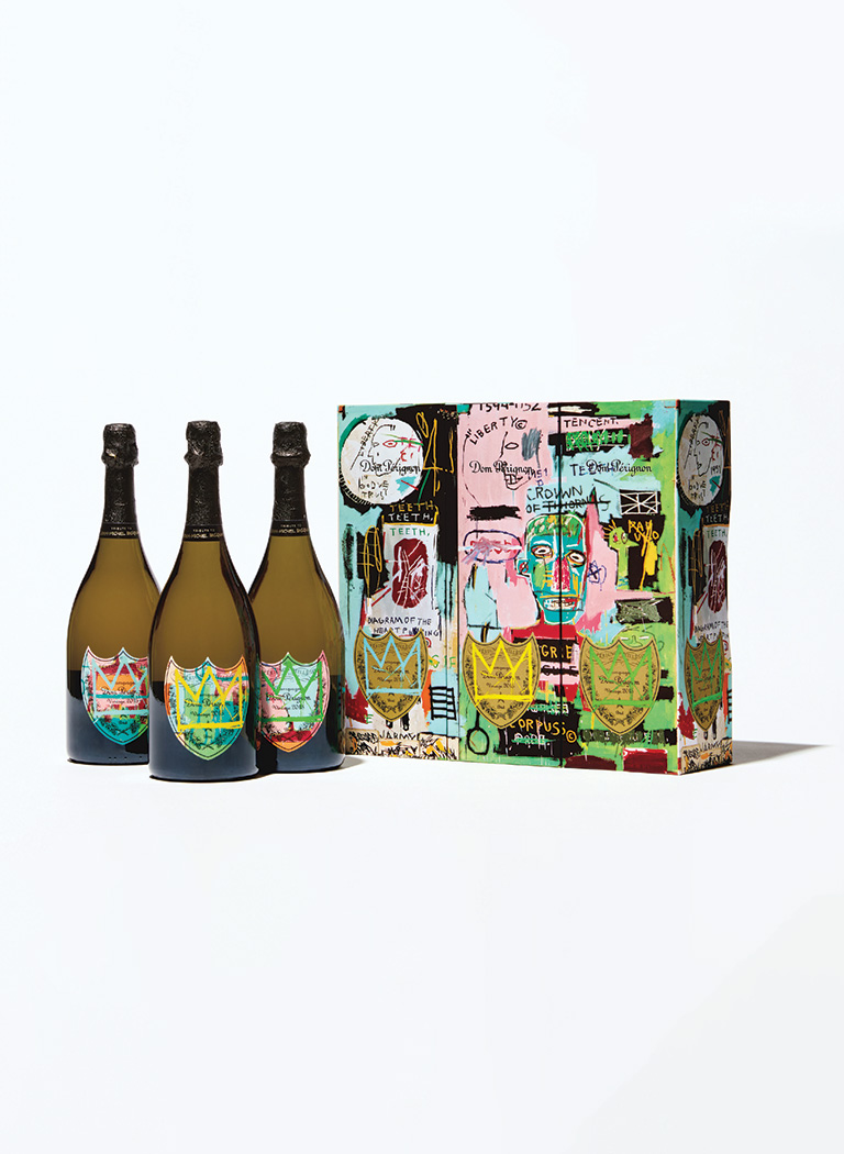 プレステージ シャンパーニュの代名詞ドン ペリニヨンが、1980年代のアートシーンに旋風を巻き起こしたジャン=ミシェル・バスキアへの賛辞を込めて、今秋、数量限定販売した「ドン ペリニヨン ヴィンテージ 2015 トリビュート・トゥ・バスキア コレクション」。