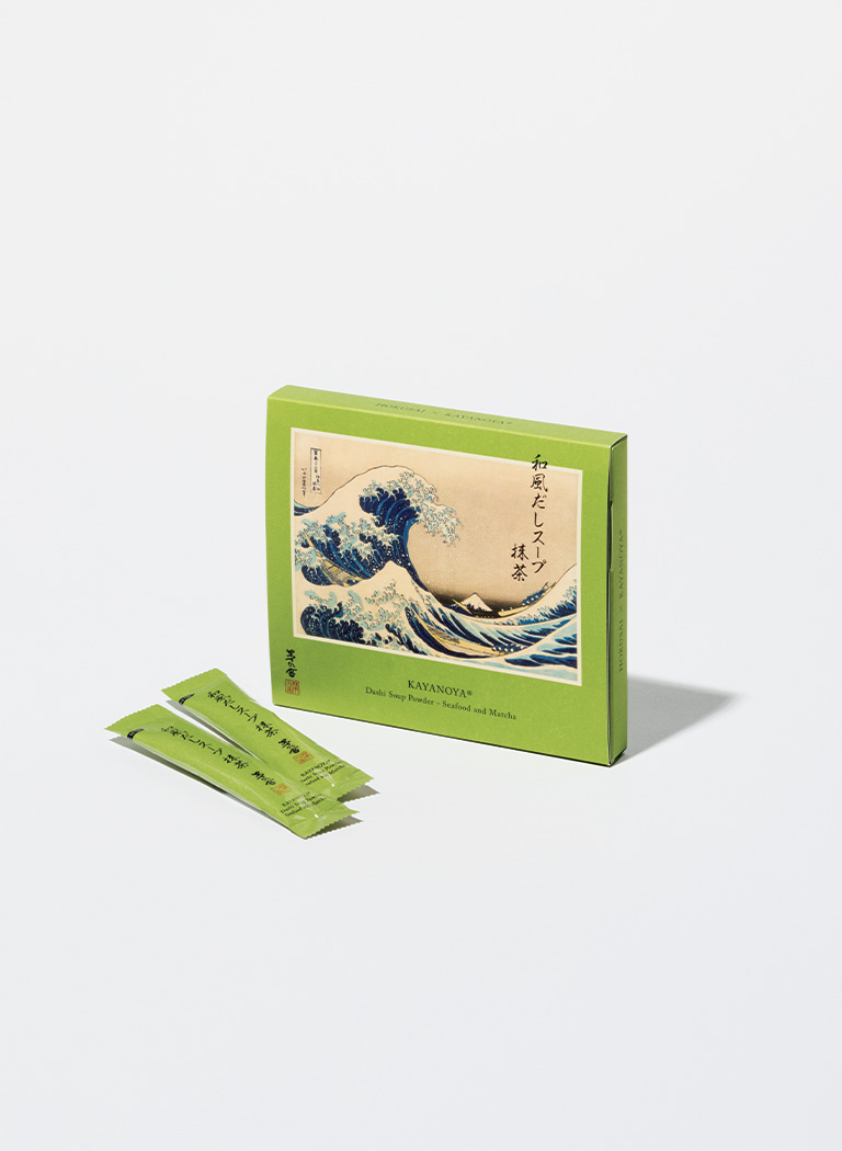 この名版画をパッケージとした「和風だしスープ 抹茶」が今年3月に発売された。