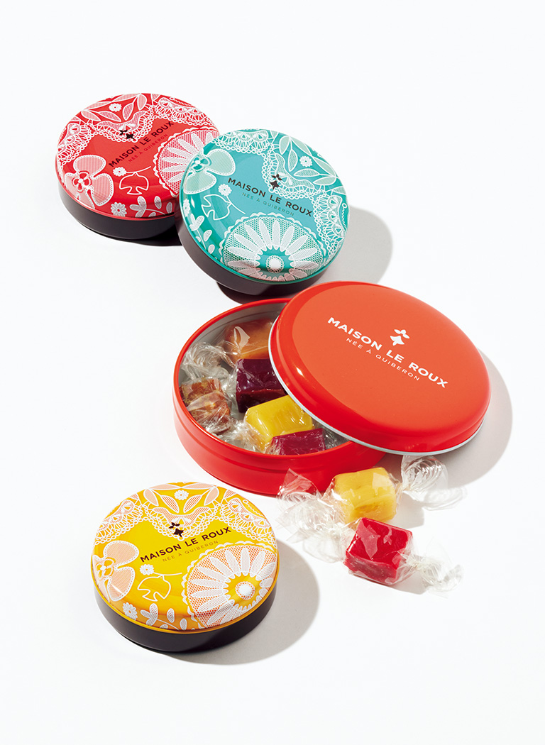ブルターニュデザイン缶 キャラメルタタン、キャラメルオリジナルアソート、キャラメルフルーツアソート それぞれ4粒入り 各1,296円