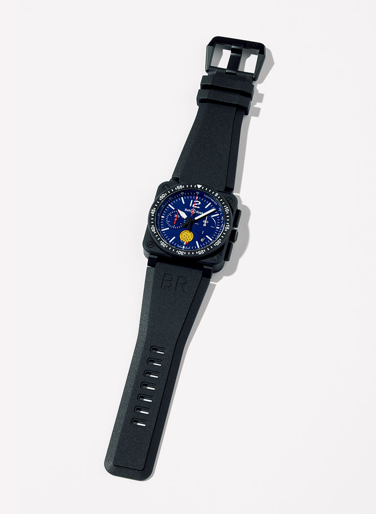 1994年、「デザインと機能の融合」をコンセプトに創業したベル&ロスのスピリットが躍如、ブルーの文字盤が大空へと誘ってくれる。