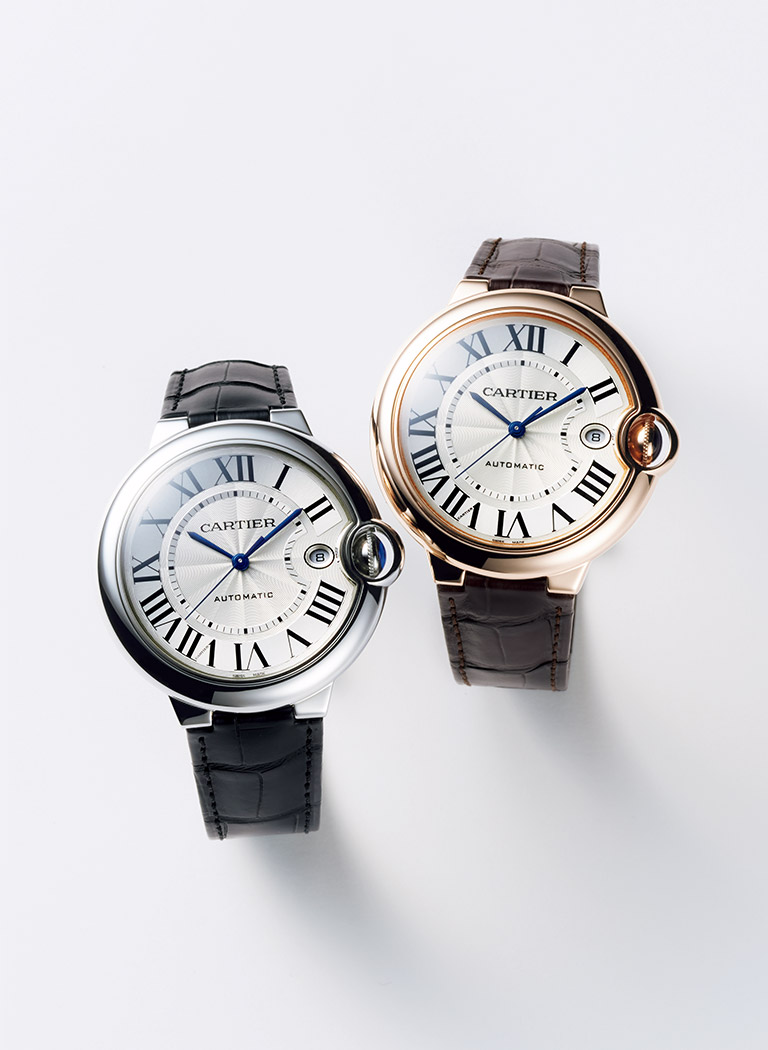 搭載機構は信頼性の高い自社製自動巻きキャリバーで、パワーリザーブは約40時間。写真右ケースは18Kピンクゴールド、左はステンレススティール製。全国のカルティエ ブティックで発売中。