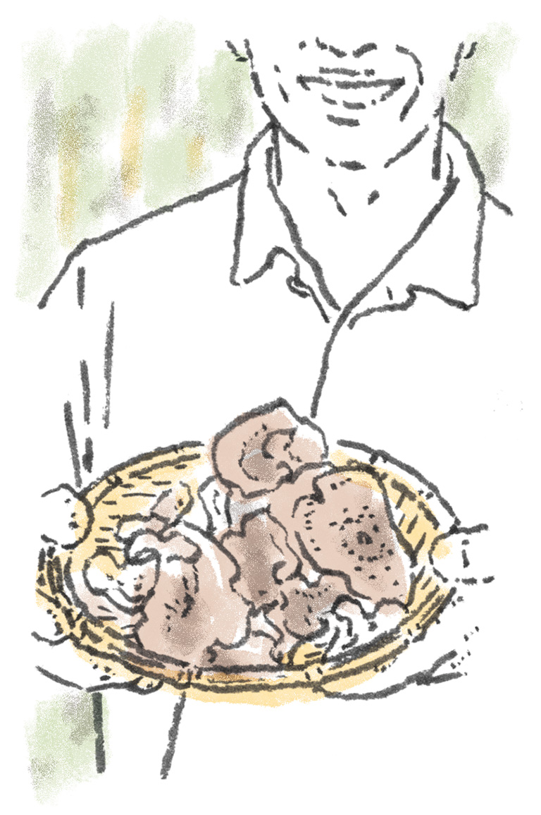香茸を干していると、家中がなんとも言えない芳しい香りに包まれます。シャキシャキの食感や味、香りで秋が待ち遠しくなる禁断のキノコ。山の中での暮らしの楽しみを大いに感じさせてくれた、私の秋には欠かせないご馳走になっています。