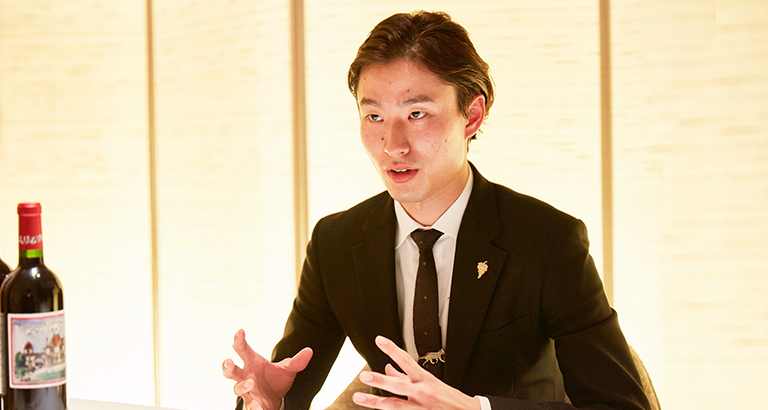 今回お話を伺ったのはダイニングマネージャー、ソムリエの鈴⽊征太郎さん。アラン・デュカスのルーツである南仏やシャネルが所有するワイナリーに基づき、豊富に取り揃えられたラインナップの中から、厳選いただいたワインについて、お料理のマリアージュとともにご紹介いただいた。(監修︓アラン・デュカス エグゼクティブ・シェフ・ソムリエ ジェラール・マルジョン⽒)