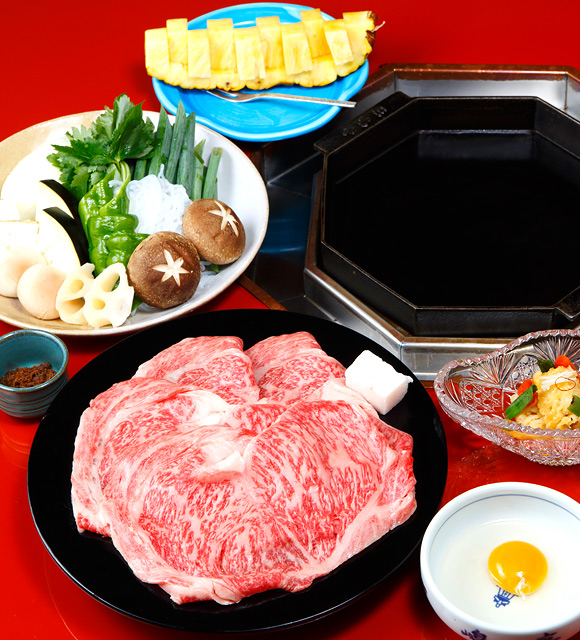 仲居の見事な箸使いと、炊かれる具材のぐつぐつという小気味よい音や香りとともに、でき上がりまでの待ち遠しい時を楽しむことができます。そして、一口食べればふわりと漂う醤油の風味と、噛むほどに滲み出す肉そのものの甘みを味わう瞬間は、まさに至福。