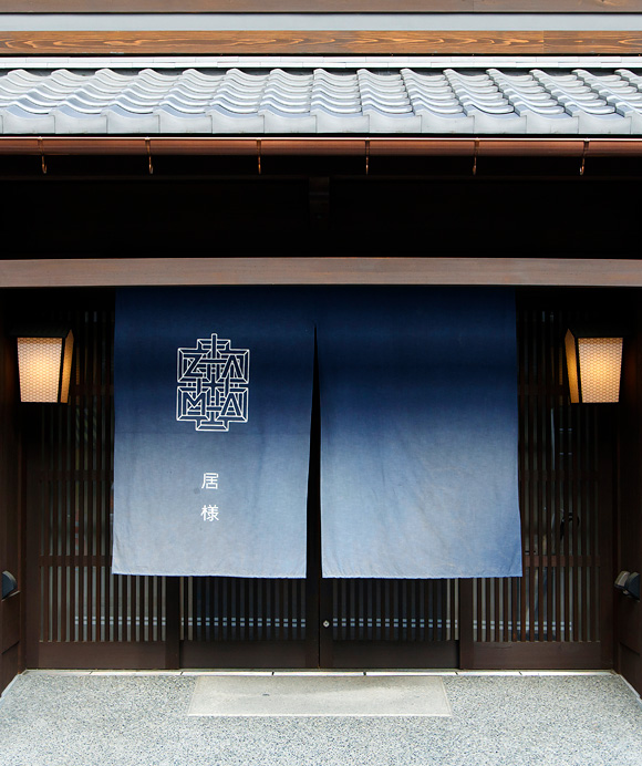 かつての呉服店の大店(おおだな)の外観を再現し、大黒柱を移築したという同ホテルの1階に店を構えるのが、和食レストラン『IZAMA/居様』です。格子戸を設けた表構えは、今もなお伝統的な京町家が多く残る新町通の町並みにしっくりと馴染んでいます。