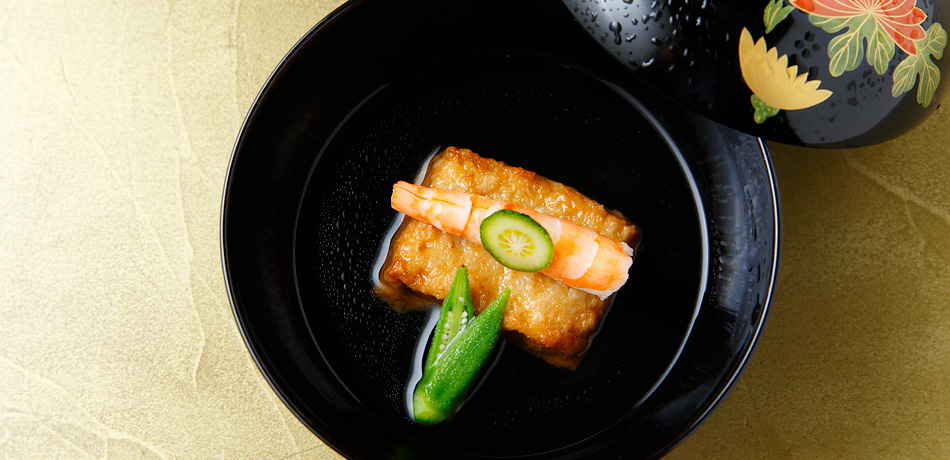 この記事の公開に合わせて特別に、ダイナースクラブ会員様のためだけの、先付・椀物・焼物・お造り・デザートなど全10品が登場する「居様の特別会席」をご用意いただきました。新旧が見事に調和した和モダンな佇まいの中、素材の旨みを引き出した美味に酔いしれるひとときを。