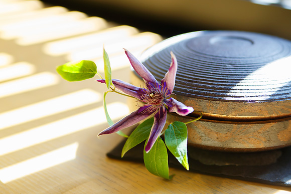 そして、テーブルを彩るのは、モダンな空間に和の粋を演出する繊細かつ大胆な生け花。連綿と続く伝統の中で研ぎ澄まされた審美眼が宿る町・京都にふさわしく、一流の技が美的感覚を刺激するアート空間と言えます。それに触れるため、遠方から足を運ぶ人もいるほど。