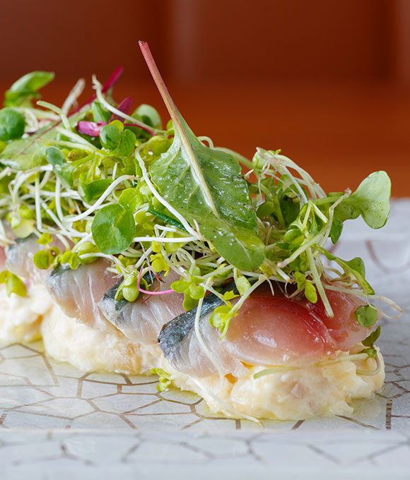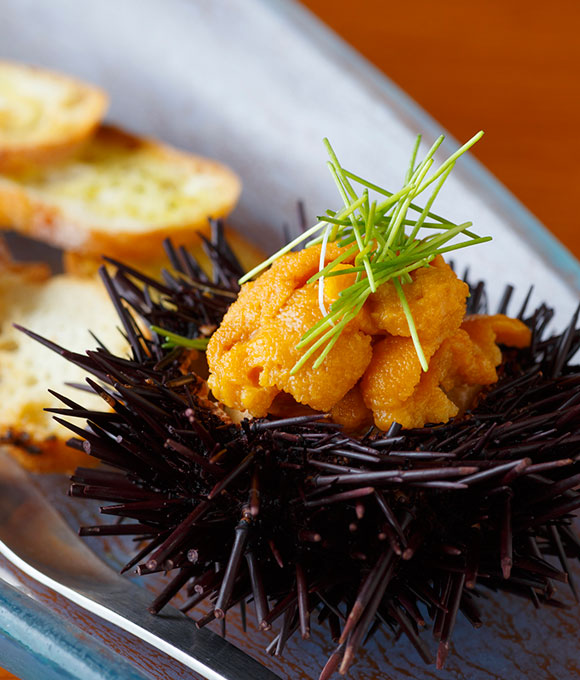 この店の魅力は、ビストロのような気軽な雰囲気の中で、ガストロノミーのような本格的なフレンチを肩ひじ張らず楽しめる、ここにしかない“バル”スタイル。村上氏の「高級料理と思われがちなフレンチだけれど、自分の好きなものだけを肩の力を抜いて楽しんでもらいたい」との考えから、料理はあえてコースは設けずアラカルトのみ。さっと手元にサーブされる料理は、気取らない店内の雰囲気からは意外とも思える本格的なものばかり。