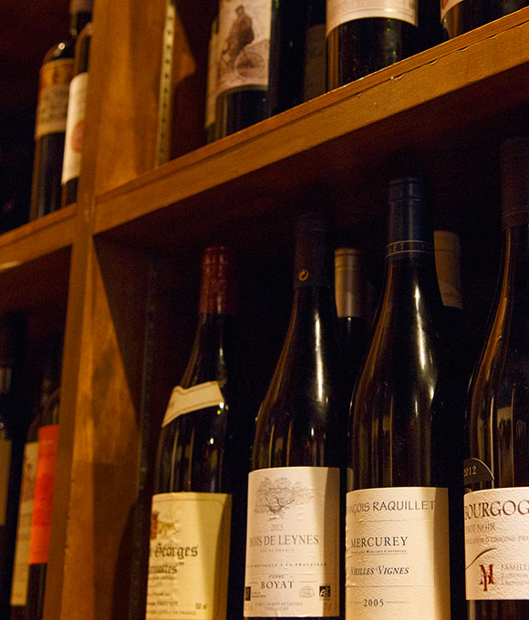 店内のワインセラーには、フランス・イタリア産ワインが常時100種類以上そろい、グラスで楽しむこともできるので、料理に合わせて相性の良い1杯をチョイスすることも可能。シェフに聞けば料理に最適な銘柄を薦めてもらえたりも。自分好みの一皿とワインとのマリアージュを楽しみながら、古都でくつろぎの夜を満喫してみては。