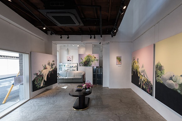 2017年3月15日(水)~19日(日)に開催されていた「志賀絵梨子展 具象化された想い」の様子(右)。