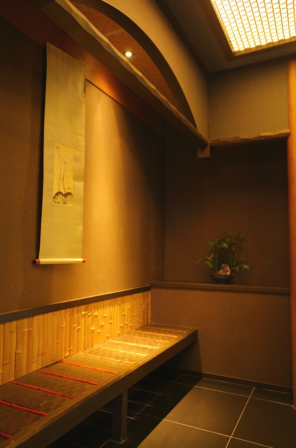 ほかにも、4畳半の茶室を備える「つぼ渦」や、待ち合いを模した玄関を持つ「桜なでしこ」など、一つとして同じ設いの部屋はない。遊び心のある空間を楽しみに、「以前と違う部屋で」とリクエストをするリピーターも多いそうだ。