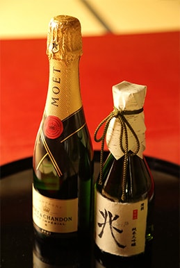 本記事を見てご予約の方に、「兆 KIZASHI 純米大吟醸」もしくは「モエ・エ・シャンドン ブリュット」のどちらか1本をご提供します。