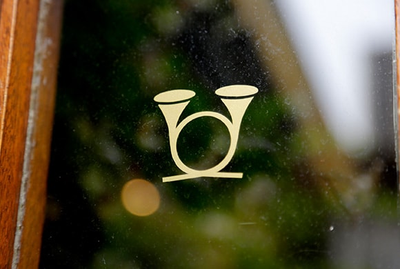 『月光荘』の店のドアにも書かれているトレードマークのホルンは、与謝野夫妻をはじめとする小山内薫、芥川龍之介、島崎藤村、有島武郎などの文化人グループが一緒に考案してくれたといわれている。まさに「友を呼ぶホルン」なのである。