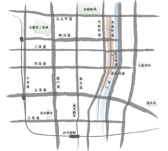 今回は、納涼床の原点ともいえる四条大橋のたもとを振り出しに、美食と界隈の歴史を訪ね歩いてみよう。