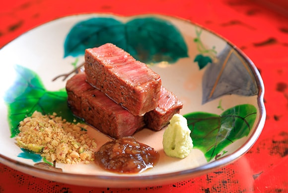 料理長・矢野由彦氏の「できる限り京都のええもんを」との想いから、食材は京都や近郊産のものにこだわる。この日は、京都・上賀茂の農家から直接届く京野菜に、琵琶湖にしか生息しない琵琶鱒、京都で育成された黒毛和牛「京都肉」など、旬の“うまいもん”が並んだ。