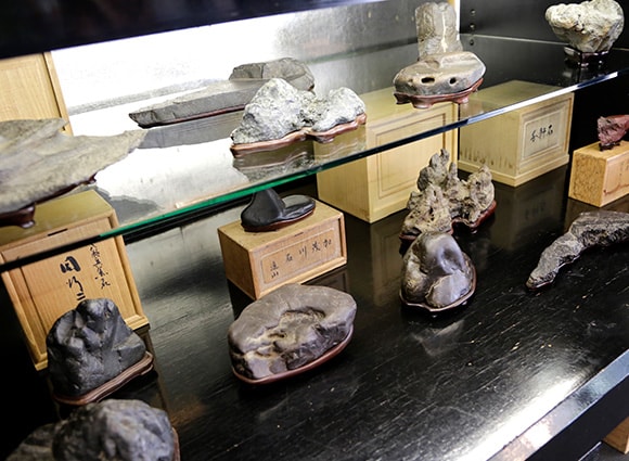 盆栽だけでなく、店内には石や置物も。一つひとつじっくり見ているとあっという間に時間が過ぎてしまいます。