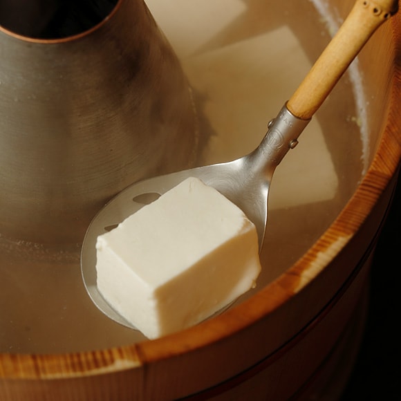 同店で用いる豆腐は、「南禅寺御用達」の名乗りを許された服部食品が、国産大豆とにがりのみで作る“ゆどうふ”用のもの。