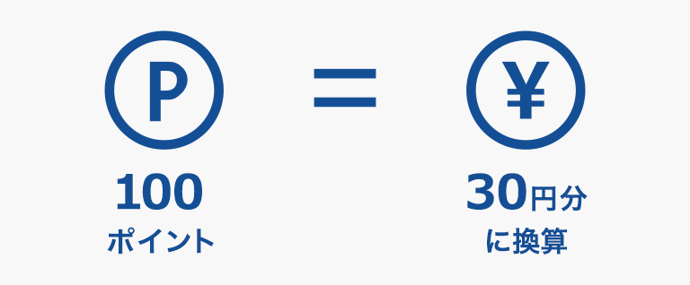 100ポイント=30円単位で、ダイナースクラブカードでお支払いいただいた代金にポイントを充当できます。