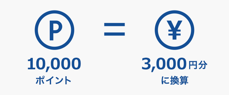 10,000ポイント=3,000円単位で、カードの利用代金にキャッシュバックすることができます。