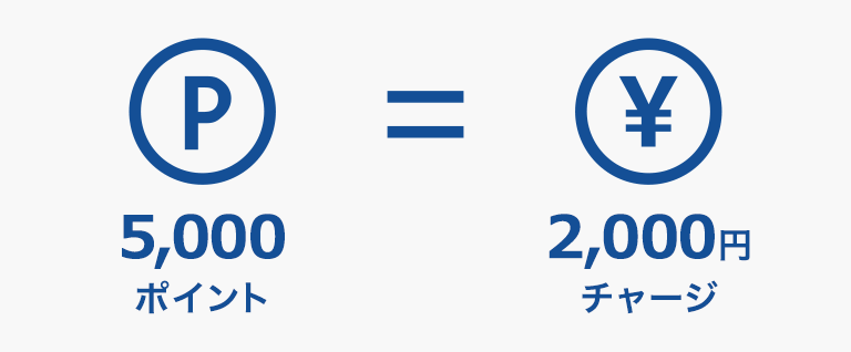 ダイナースクラブ リワードポイント 5,000ポイントを2,000円チャージに移行できます。