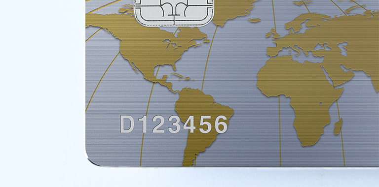 ロイヤルプレミアムメタルカードのおもて面には会員様お一人おひとり異なるシリアルナンバーを刻印。世界に1枚だけのあなた様専用のカードになります。