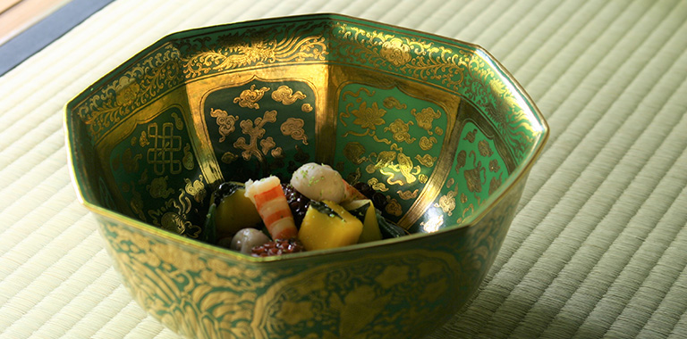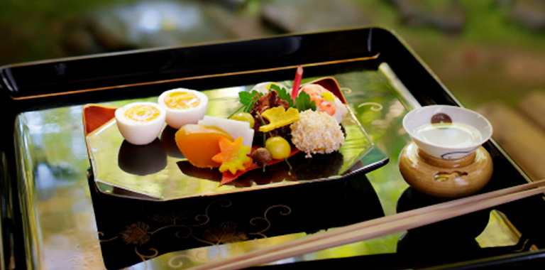季節ごとに趣を変える茶室にて、名物「瓢亭玉子」をはじめ、夏の「朝がゆ」、冬の「鶉がゆ」など、不易流行の京料理をお楽しみいただけます。