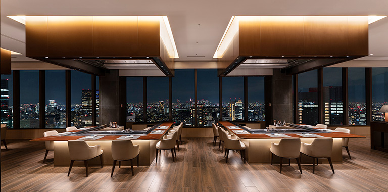 開業時から「日本の美」と「日本の心」を大切にしているThe Okura Tokyo。鉄板焼 さざんかではすべての食材で最上級を追求し、厳選された和牛に魚介類、そして季節の野菜を使用。