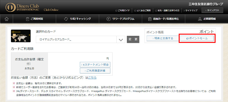 クラブ・オンラインにサインオン後、「ポイントモール」をクリックしてください。