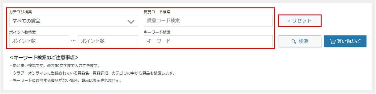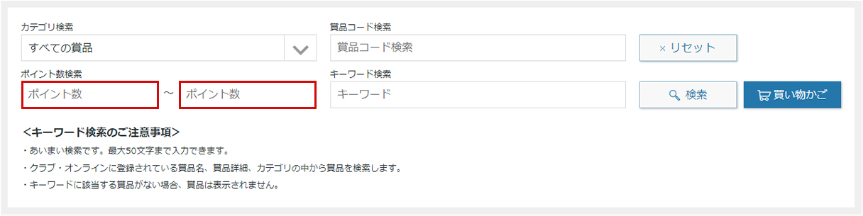 「カテゴリ検索」、「ポイント数検索」、「キーワード検索」の条件を組み合わせて、お好きな賞品を検索できるようになりました。