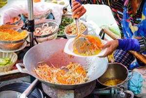 バンコクは、安くておいしい屋台料理で有名です。旅の目的が「屋台料理」であるならば、チャン通りに向かいましょう。ダックヌードルスープ、タイ風ドーナツ(パ・トン・コ)など、様ざまな料理から選ぶことができます。ほとんどの地元の屋台では、現金しか使用できませんので、途中でATMに寄るといいでしょう。