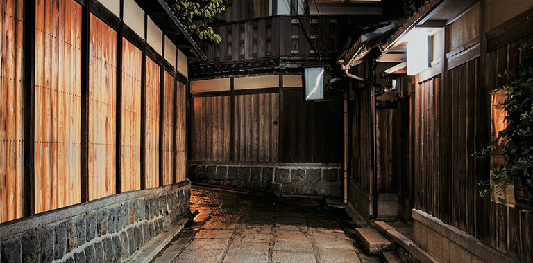 石塀小路の奥に静かに佇む大人の隠れ宿は、会員制の宿「月乃舟」。
