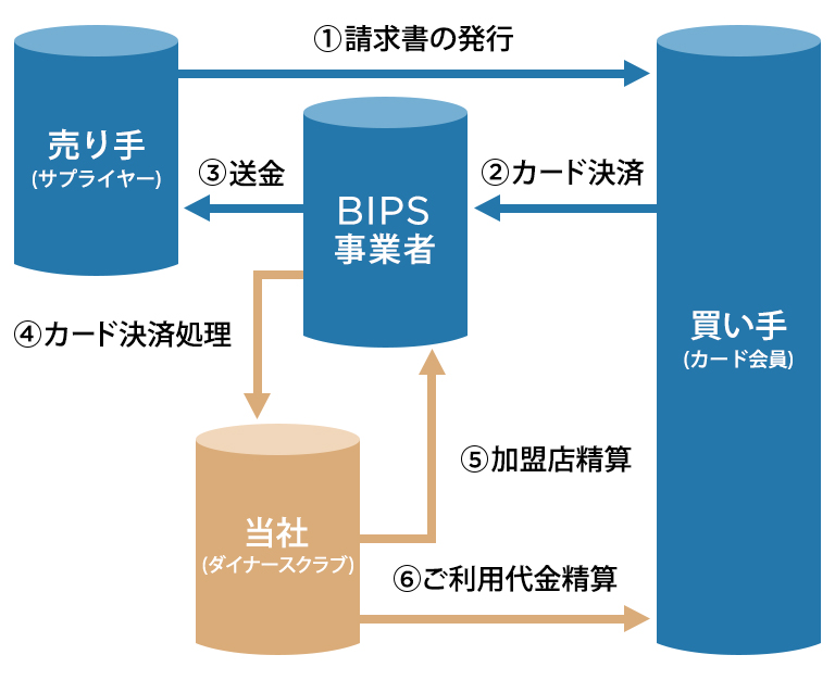 カードで支払いを行いたい「買い手(=ダイナースクラブ会員)」とカード支払いを取り扱っていない「売り手企業(=サプライヤー)」の決済をつなぐ新たな決済の仕組み(法人決済スキーム)です。